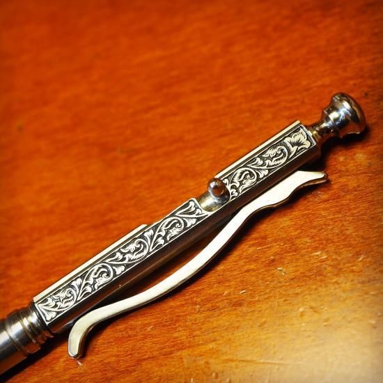 そしてこのミニボールペンには、TETORI氏の魂の唐草の彫金が施されております。こんな細い所へここまで素晴らしい彫金です!!!!!!!!!!